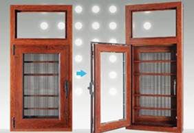 框中框木纹平开纱窗